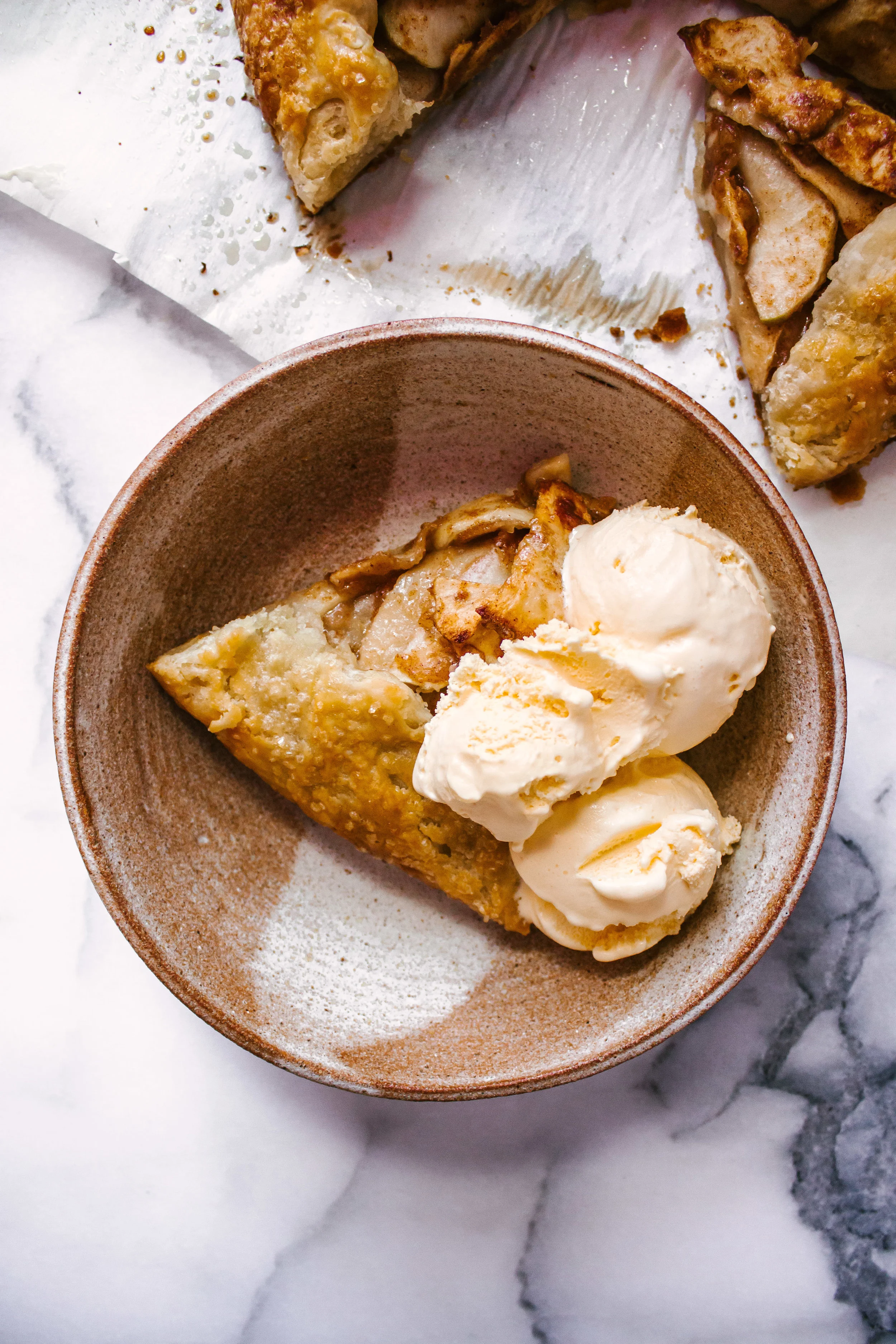 If you’ve never heard of a galette, don’t worry, you aren’t alone. When I was baking this galette, and the cinnamon-nutmeg-buttery aroma greeted my husband when he came home, he excitedly inquired about what I was making. “An apple galette,” I said. And with a confused face he said, “The best a man can get?”. Hahah, no! A galette (not a Gillette) is a freeform, crusty cake of pastry. It can be sweet or savory – being filled with anything ranging from sweet blueberries to butternut squash. This freedom of creativity is what I love about a galette, not to mention how much easier it is to make than a pie. So go ahead, make this dessert for a cozy night in! And of course it’s best served with ice cream!
