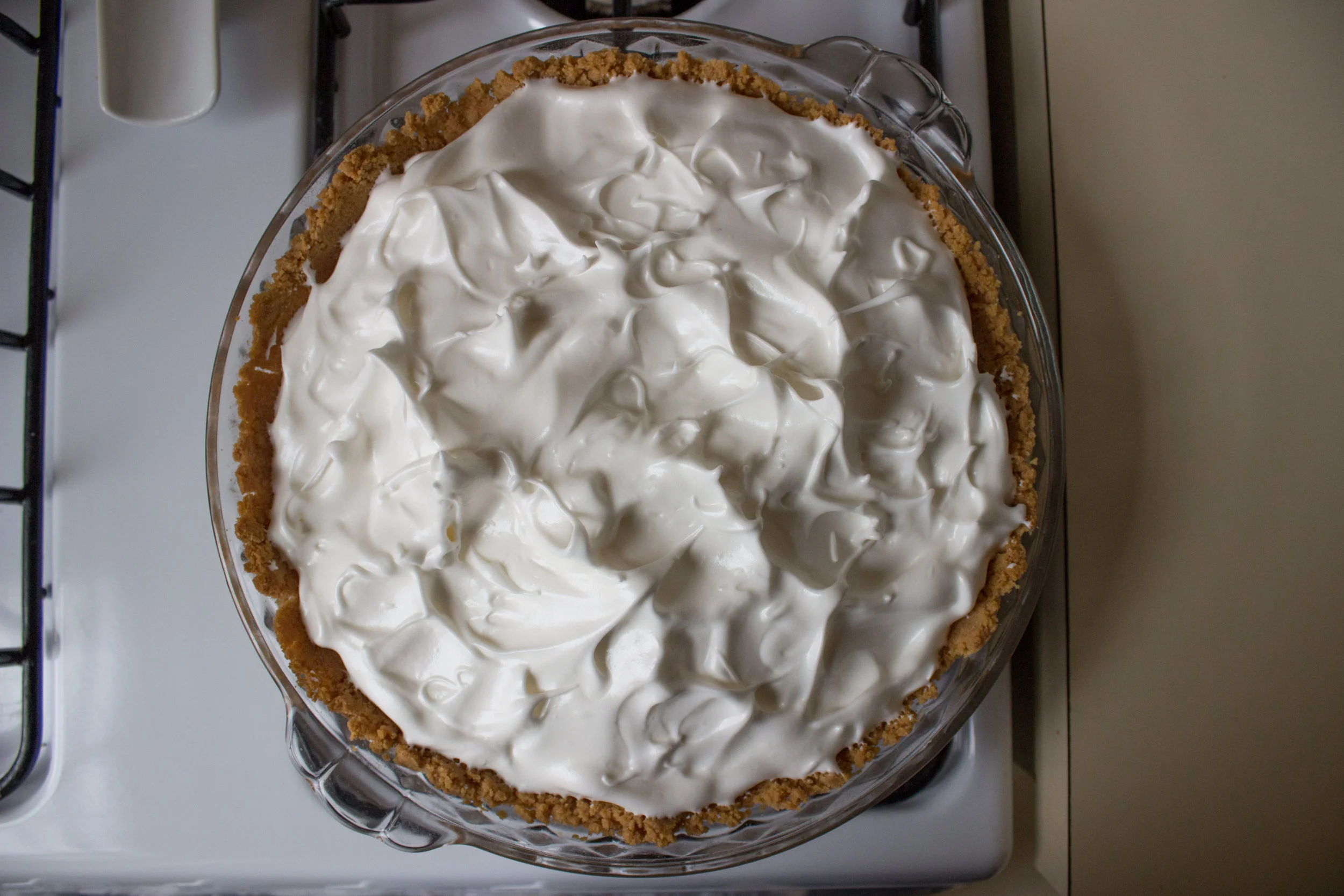 When you are ready to serve the pie, prepare the meringue. The entire meringue process should take 10-15 minutes.